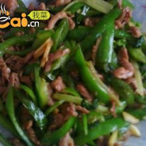 将猪肉洗净切丝,用酱油生粉腌制备用,青椒切丝