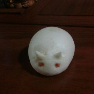 用剪刀剪出耳朵,沾上眼睛,我是用是胡萝卜,
