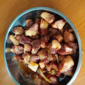 肉洗净,切正方块,热水下锅焯水捞起备用