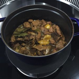 将葱姜蒜爆锅,加肉翻炒,加入香料翻炒后加盐,加水,大火烧开。
