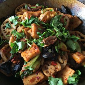 等料滚开,把焯熟的菜倒入搅拌均匀,炒制十分钟,最后撒入香菜~~就可以吃啦!