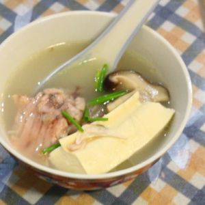 煲汤锅放入适量水,大火烧开水,把炸好的鱼和生姜,香菇一起放入,滴几滴醋后,小火慢炖30分钟,再放入豆腐继续炖15分以上即可。想要香浓的鱼汤,可以延长炖的时间。