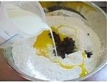 倒入酒糟、鸡蛋先与干料混合均匀,缓缓下入牛奶和面(面粉的吸水性不同,不要根据配方一次性全部加入),我原先只取了140ML的牛奶,后来又多加了20ML。将粉和成一个光滑的面团。