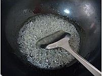 锅内放白糖和水,开中小火熬制,要不停的用铲子搅拌融化的糖汁水。