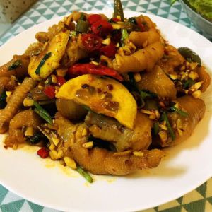 鸡爪剁小块焯水,水开出很多血沫,然后捞出温水洗净,再次入锅煮,加入葱、姜、八角,十几分后关火,再焖半小时。这种口感是比较有弹性的,喜欢软烂一点的延长煮的时间。