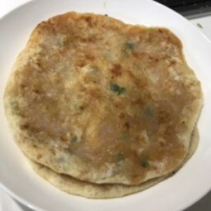 面粉加一小撮盐,使用温水和成光滑的面团,不同面粉的吸水率不同,水量仅供参考!水分次添入不要一次加完,面团可以偏软一些,饼的口感更好!和好的面团包保鲜膜,静置30-60分钟。