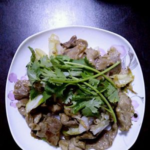 把用生抽,料酒腌制一会儿的羊肉放油入锅,翻炒,放入蚝油