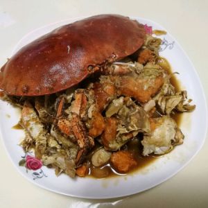 先把蟹肉和蟹腿放进锅里炒一下,然后加入生抽和白糖,因为螃蟹是海蟹,本身有咸味,不需要加盐