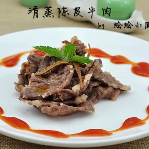 锅内放水烧开,把装有牛肉片的碟子放在锅上,大火蒸3分钟即可。