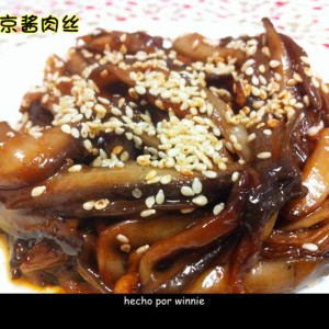 锅烧热,倒油,7成热时,放入姜丝炒香,然后放入平菇丝,用中火煸炒大约5分钟左右,炒到平菇丝的水分蒸发,变得略干,边儿上焦黄后倒入酱汁炒匀,出锅撒些白芝麻即可。
