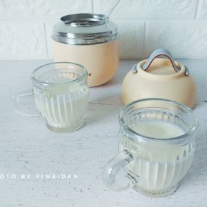 把搅拌均匀的牛奶倒入焖烧罐中(可以先加入白砂糖也行,后加也行)