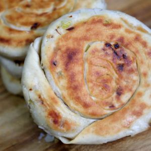 擀成薄薄的面饼,撒盐,用手铺开让整个饼均匀沾上盐粒