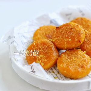 5.锅里就少许油,煎熟,软糯的南瓜饼就煎好了。