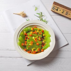 将调制好的酱料淋在莴笋上,静置十分钟即可使用,香脆可口,谁都爱吃。