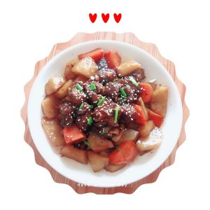 准备好蒜瓣切块,干辣椒切段 适量冰糖 八角 香叶 桂皮 土豆胡萝卜切块备用