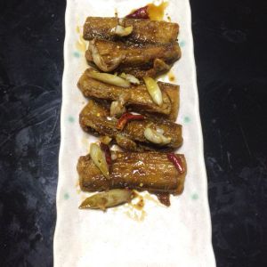 热锅凉油。带油七成热后放入带鱼段炸制金黄色。捞出。待油温升到九成热放入带鱼段复炸一次。捞出控油。