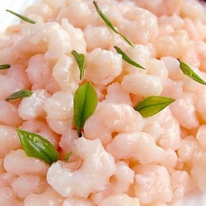将1000克虾去壳,挤出虾肉,其方法是一手捏住虾的头部,一手捏着虾尾,将虾肉向背颈部一挤,虾仁即脱壳而出。将虾肉盛入小竹箩,用清水反复洗至虾仁雪白,盛入碗内,放入3克精盐和1个鸡蛋蛋清。用筷子轻轻拌至有粘性时加入40克湿淀粉,加25克味精拌匀,静置1小时,使调料渗入虾仁