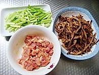 里脊肉切丝,放少许盐、胡椒粉、淀粉、油,再加少许水搅拌均匀腌制一下。