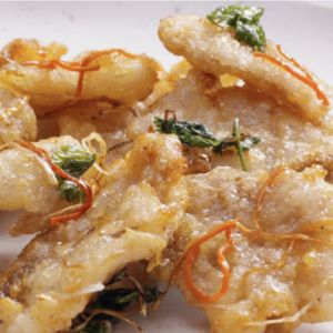 转大火,油起烟时,复炸肉片,炸至金黄色。