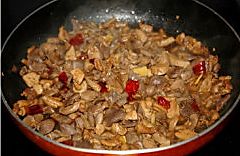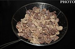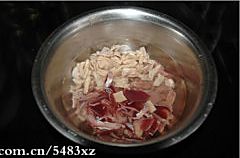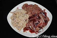 将肥西老母鸡鸡肝,鸡肠,鸡肫分别洗净切块。