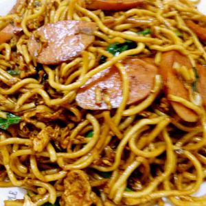 倒入生炒面翻炒片刻,再放入油菜继续翻炒