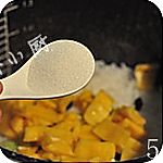 用勺子将米饭和加进去的材料拌匀,盖上锅盖,继续焖5分钟。