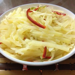 倒入土豆丝翻炒,加一点水,小焖一会儿。