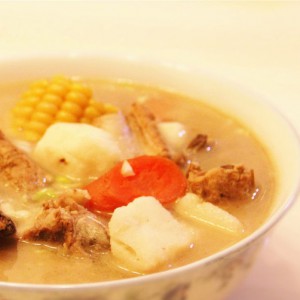 待水开之后,放入适量盐、鸡精、和调料包(我是用纱布把上面跟大家说的调料包在一起,用线绑住纱布,做成一个调料包),并放入玉米、胡萝卜块、山药块。盖上锅盖,用小火慢炖一个小时。