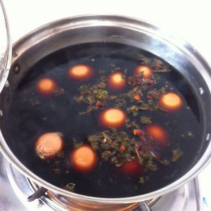 开锅中火煮10分钟,转小火。在每个鸡蛋上轻轻敲几下,这样做更入味。然后在煮10分钟,关火。着急吃可以在煮一会直接吃,不着急可以让鸡蛋泡越久越入味。吃的时候可以热一下更美味。