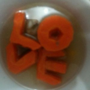 原谅我的渣刀功,切好剩的底料可以再炒菜,以免边角料剩太多,所以刻一个单词就够了。技巧就是字母,粗细均匀,横平竖直……