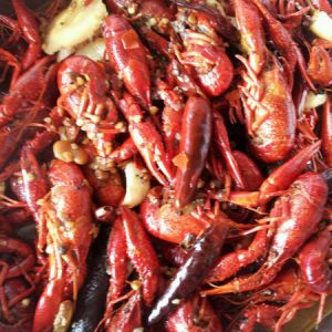 加入洗好的小龙虾翻炒,记得用锅盖压好哦,不然小龙虾就爬出来了。这一步很残忍!