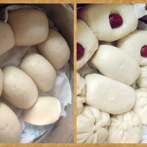 第五步:揉面团,揉成圆柱填,然后用刀切成一个个馒头