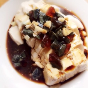 用酱油汁浇在豆腐上,酸咸爽口,冰冰爽爽。