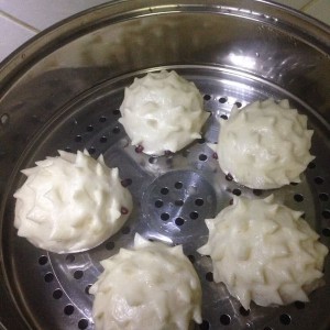 把发酵好的面团分成均匀的小团,反复揉,揉好后用剪刀剪刺猬的刺了,一排一排的向后剪,就像真刺猬的刺一层一层,最后用红豆当眼睛安上去,可爱的小刺猬就做好了,不要着急上锅,用布子或盖子把刺猬们盖好,再醒半个小时,就可以上锅蒸了,上气后蒸20分钟出锅。