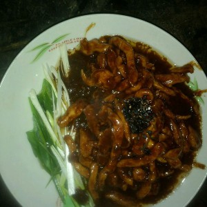 锅中再次放油,放入甜面酱,耗油,盐,糖,沙司少许,酱油少许至汁儿浓稠放入炒好的肉丝再翻炒片刻即可出锅!