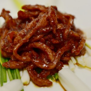 起锅放油,放入调好的酱料(甜面酱加糖)改小火炒香,并冒出小泡i,改大火加肉丝快炒入味即可。
