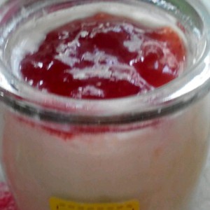 PS.没用酸奶菌和用酸奶菌的自制酸奶成品比较:上边那瓶是没用酸奶菌的,比较希,也比较酸,用酸奶菌的则相反。