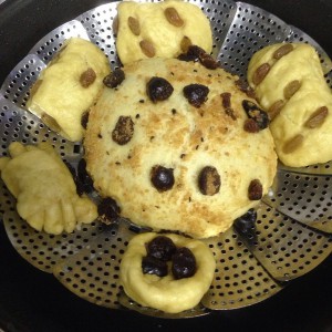 然后把面揉好,做成喜欢样子就行了,放锅蒸,