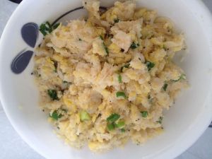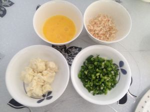 1.准备好小豆腐,鸡蛋,虾皮和香葱