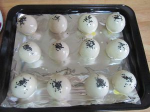 放在烤盘上, 在表面上先刷层蛋黄液;