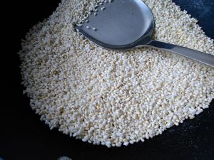 炒至糯米金黄即可盛出散热