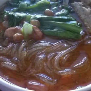 漏拍了好多图,忙活的时候也忘记啦。比较有效率的做法当然是要把红薯粉先放水里泡一会儿,大约30分钟到1个小时,这段时间内可以调一下酱料。把辅料都放到一起搅匀,把花生米和黄豆洗净后翻炒至熟,然后静静等待红薯粉煮熟出锅吧~~~最后的成品如图