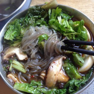 汁烧开后装碗加入芍粉,加入香菜末、花生米,开吃拉!