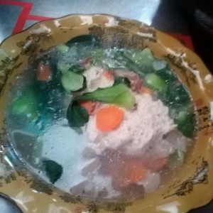 过上火加水,烧开转小火下拌好的主料煮,下火腿,快熟时加入金白菜出锅装盘