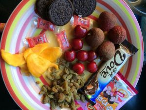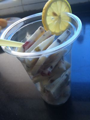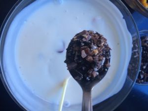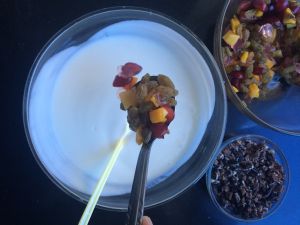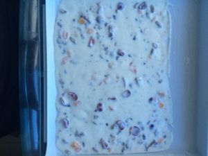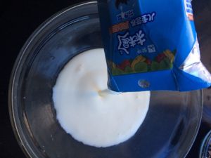 搅拌好的酸奶平铺在保险膜上(不要太厚)放入冰箱冷冻半小时左右
