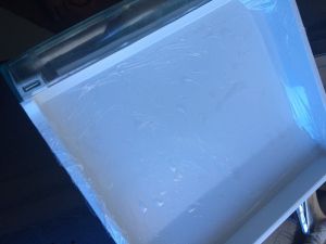 拿出冰箱冷藏室抽屉铺上保鲜膜