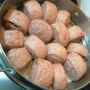 紫薯馒头做好了,开吃!选几个大小一样的拍照,哈哈