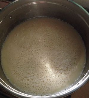 浸泡后的黄豆粉兑适量水入锅烧开,注意火候,烧开了容易冒出来。