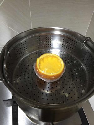 橙子从三分之一处切开,把橙子肉取出来,我用的辅食机打碎,过滤出橙汁,把橙子皮挖干净。鸡蛋取蛋黄