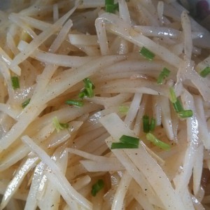 倒油炒、盐1小勺还是别加水、有一点点焦焦的也蛮好吃